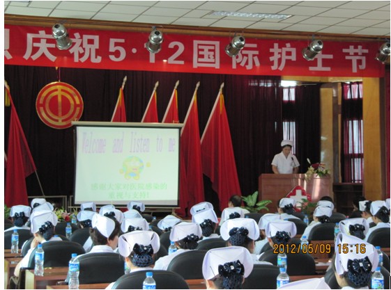 2012年5月9日下午,门诊六楼会议室,激情飞扬,气氛热烈,我院“5.12国际护士节庆祝大会”在这里隆重举行。党委书记、院长尹利德、党委副书记陈存文、副院长马晓元、副院长杨顺英、党委委员、工会主席、党政人事办公室主任赵洪源5位领导出席会议,全院护士长和100名护士参加大会。