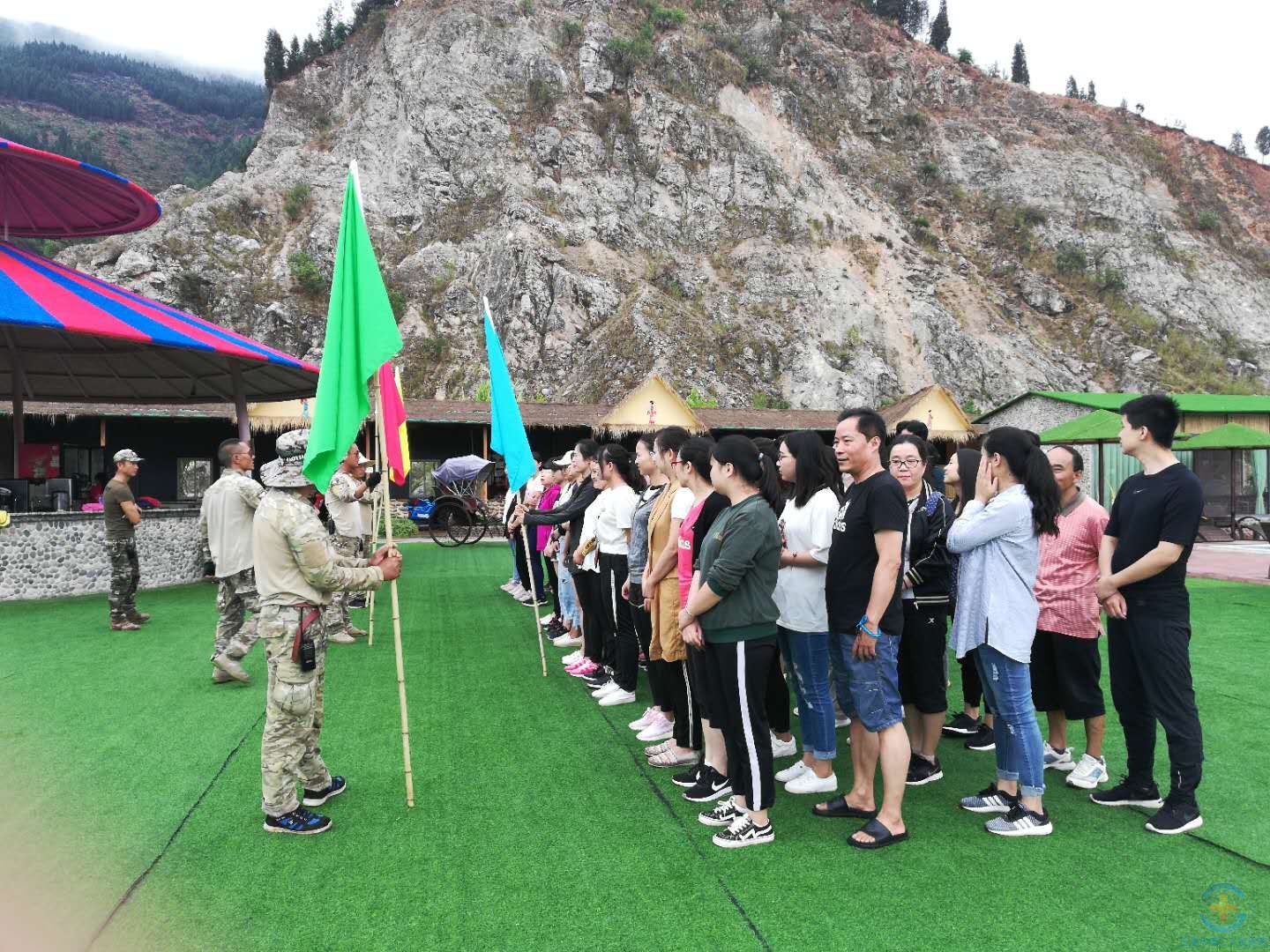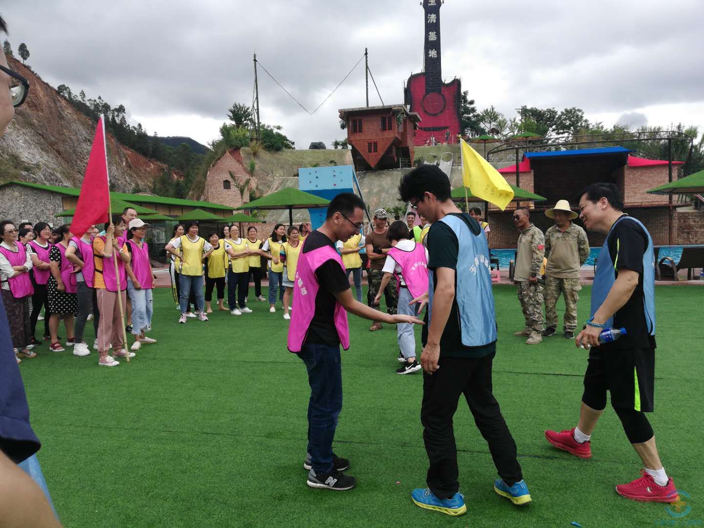 培训基地位于红塔区小龙潭生态山庄,环境优美,空气清新,别具特色。活动首先进行了宣誓,随后进行团队分组,以小组为单位开展了小鸡下蛋、接力乒乓球、划拳等游戏,为大家“走进”拓展训练,达到户外素质拓展训练目的营造了良好的氛围。