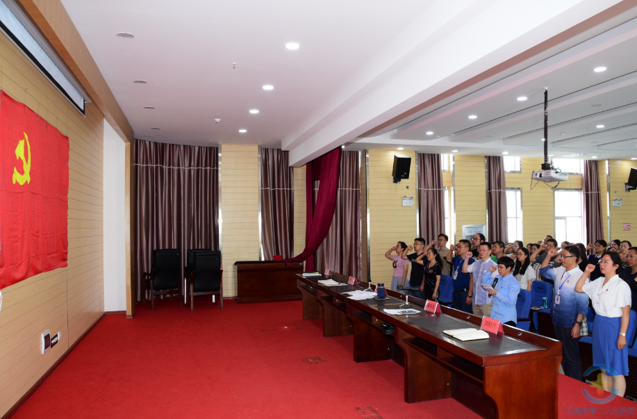 会议在庄严的国歌声中拉开序幕,与会人员重温了入党誓词。