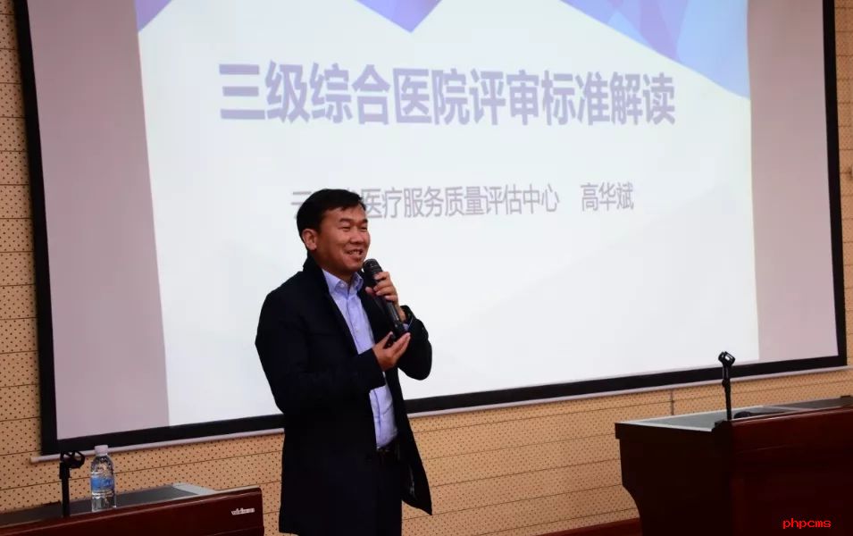 会议邀请云南省医疗服务质量评估中心主任张敏、副主任高华斌到现场培训。张敏从医疗服务评估中心的历史沿革、等级医院评审工作的变化等方面阐述了等级医院评审的重要性。