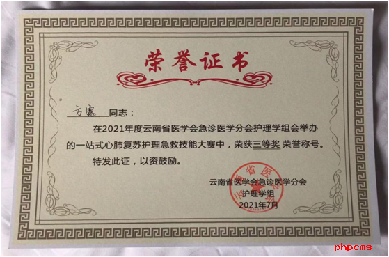 2021年7月24日,由云南省医学会急诊医学分会主办的“一站式心肺复苏护理急救技能大赛”在昆明举行,玉溪市第二人民医院派出急诊科护理团队参赛并荣获三等奖。