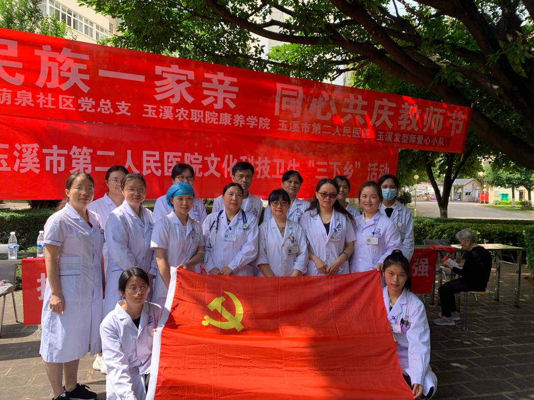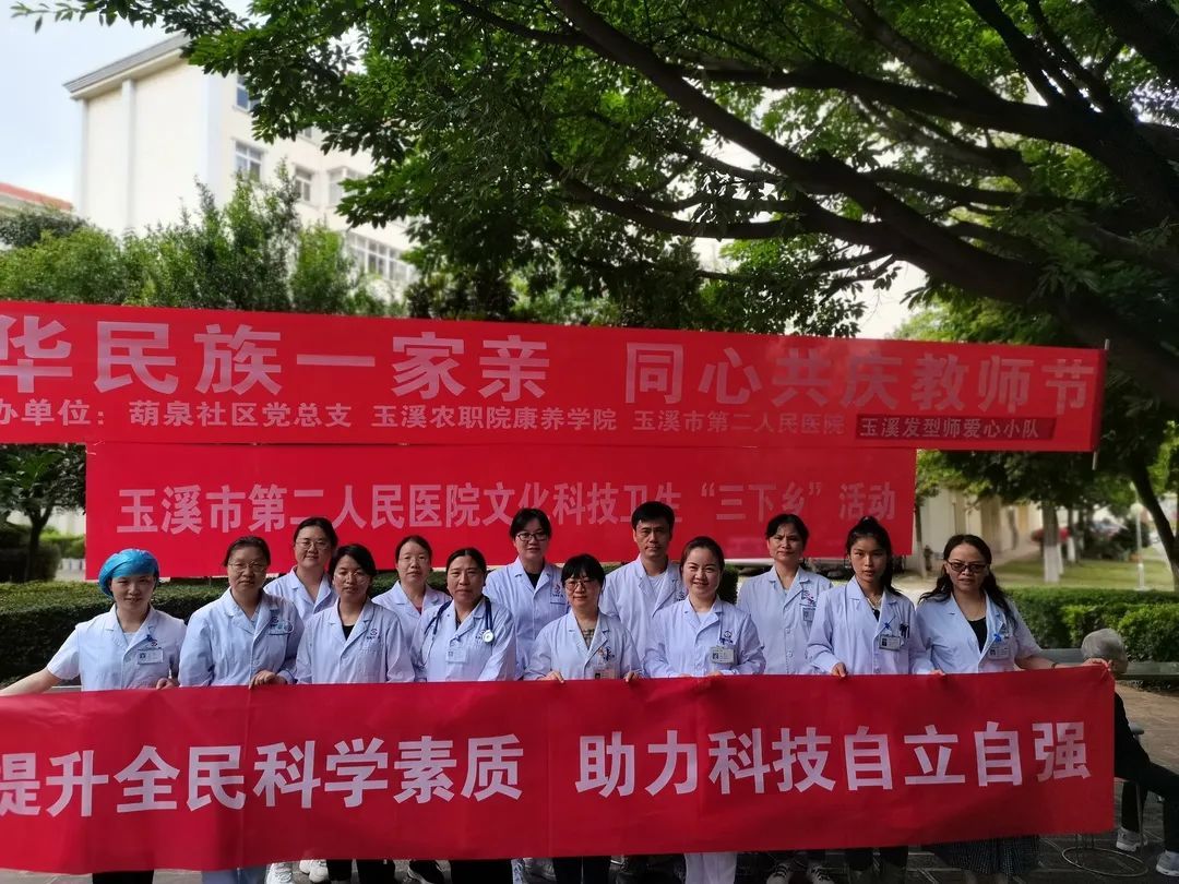 9月6日,在2023年第39个教师节来临之际,由玉溪市第二人民医院第四党支部联合葫田社区党总支、玉溪农职院康养学院举办,医院科教科、门诊部组织的临床带教老师和学生共同参与的卫生科技“三下乡”活动在玉溪市教师小区开展。