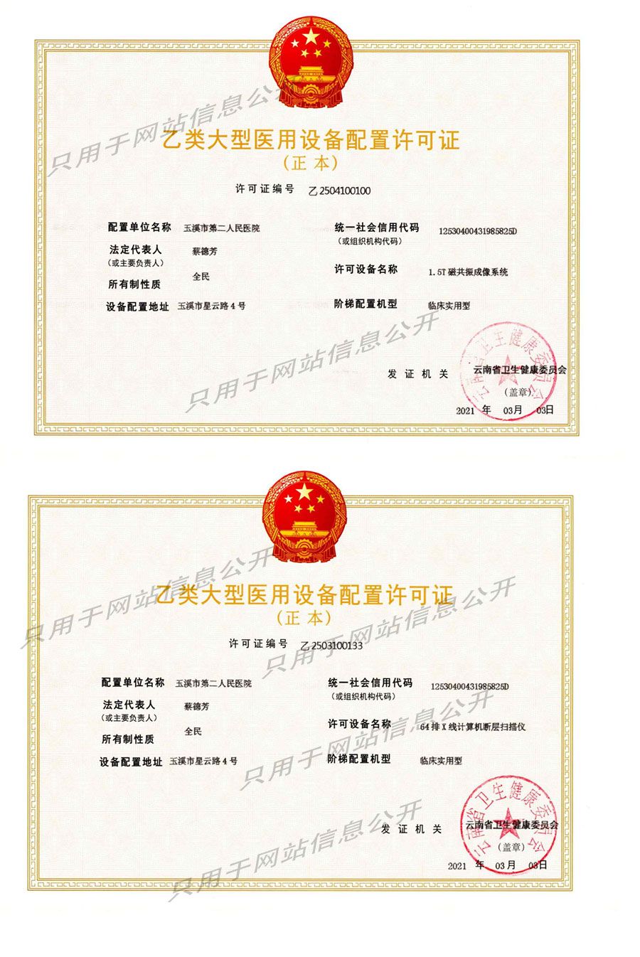 64排CT及1.5T磁共振配置许可证