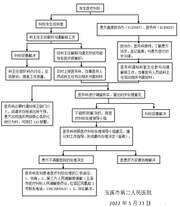 玉溪市第二人民医院医疗纠纷处理流程图