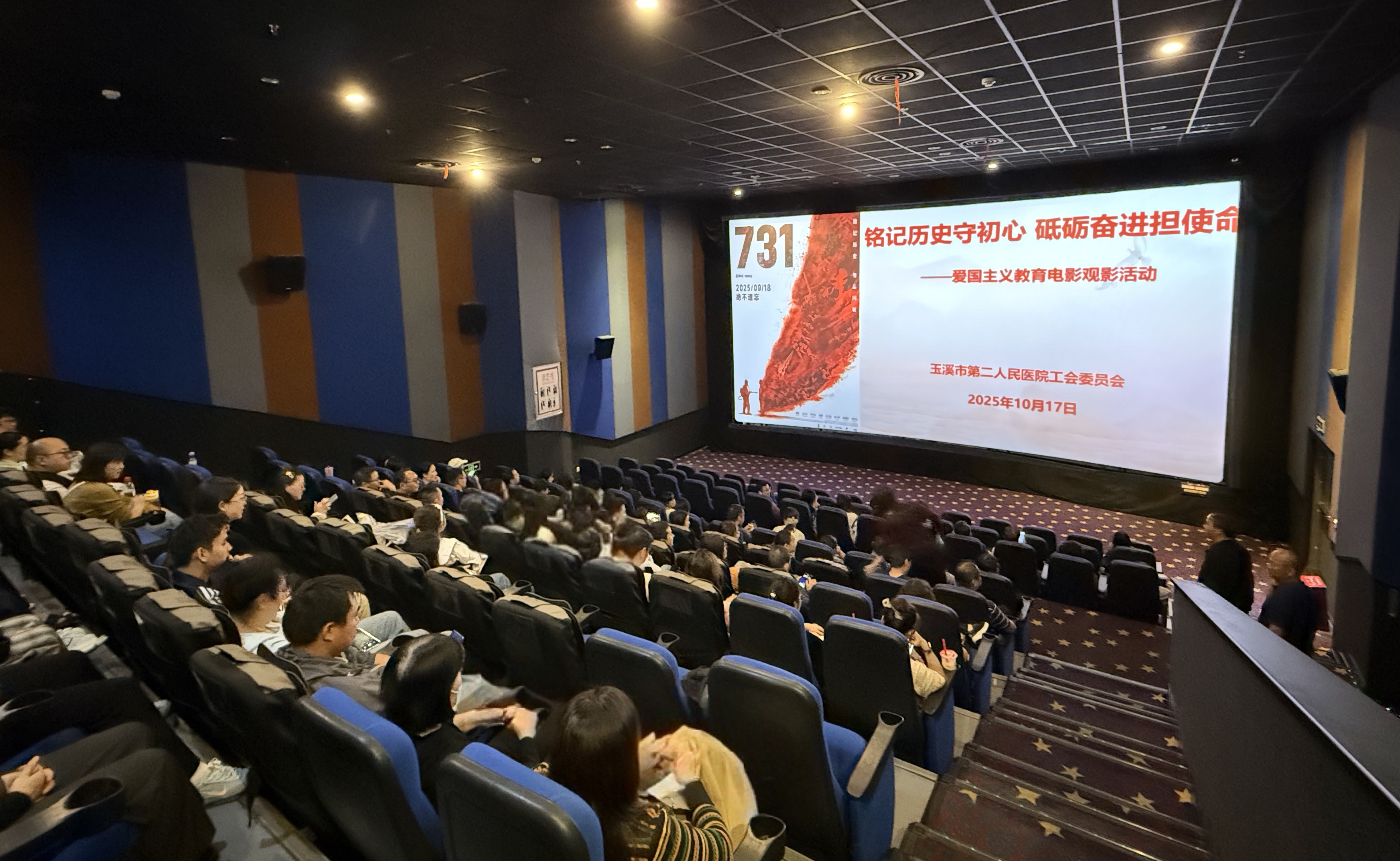 为深入开展爱国主义教育,引导广大职工铭记历史、缅怀先烈,传承和弘扬伟大民族精神,进一步凝聚医院发展的精神力量,近日,院工会分两批次组织全院200余名职工集体观看了历史题材影片《731》。