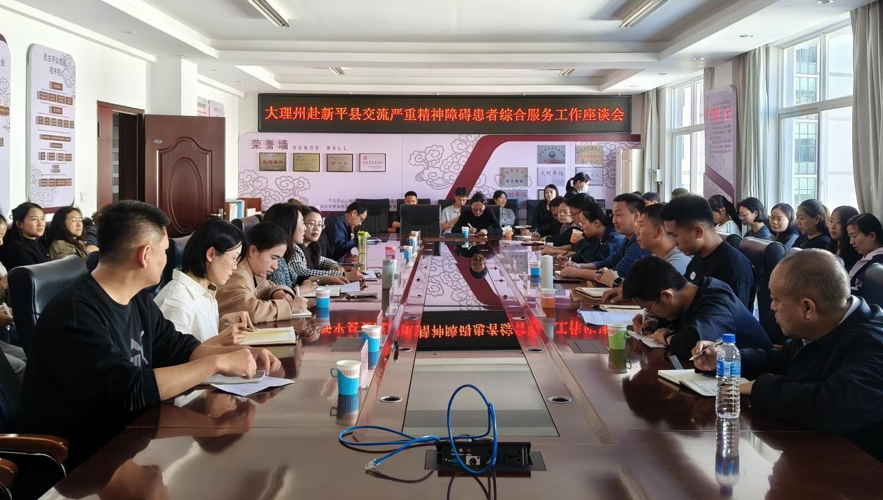 随后在新平县人民医院开展座谈,新平县县级精神卫生领导小组系统介绍严重精神障碍患者集中筛查诊断评估的“分片包干、质量双检”机制,以及慢性病就医证“线上申请+线下快办”的流程优化经验,双方现场查阅工作台账,深入交流数据质控方法;随后前往新平县平甸乡服务点,乡综合管理小组与村(社区)关爱帮扶小组现场演示日常随访标准化流程——从风险评估、用药指导到心理疏导的全环节操作,为基层服务提供可复制的实践样本。