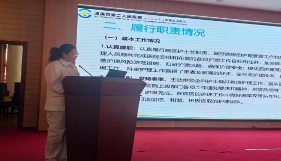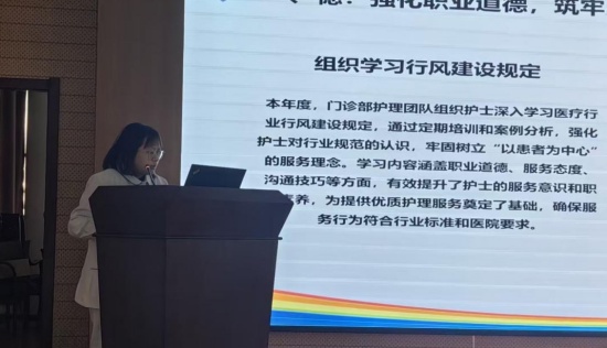 随后,来自各科室的14名护士长依次登台汇报,紧扣“德、能、勤、绩、廉”五个维度,结合本科室实际,详细介绍了在提升护理质量、保障患者安全、优化服务流程、强化护士分层培训、加强内控管理、开展特色专科护理、推动护理科研与教学等方面所进行的探索与实践。一项项扎实的举措,一组组翔实的数据,一个个温暖的案例,生动诠释了各护理团队在过去一年中的辛勤耕耘与丰硕收获,展现了护士长们卓越的管理能力和全体护理人员爱岗敬业、精益求精的职业风貌。