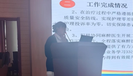最后,分管副院长王雨虹对本次工作总结交流会给予高度评价。他指出,此次会议不仅是对过去一年护理工作的全面检阅,更是一次思想碰撞、经验互鉴、共同提升的重要契机。各位护士长立足岗位、深耕一线,用数据说话、用实绩证明,充分体现了强烈的责任意识和深厚的护理情怀。面对新征程,王雨虹提出殷切期望:一是要深耕专业,持续精进,不断提升个人专业素养与团队整体战斗力;二是要见贤思齐,互学互鉴,主动查找不足,积极学习兄弟科室的先进经验;三是要加强联动,协同共进,打破科室壁垒,促进资源共享与优势互补,努力构建“经验共分享、问题共探讨、发展共推进”的生动局面,最终实现全院护理工作从“点上出彩”到“面上开花”的整体跃升,为人民群众提供更加安全、优质、高效、温馨的护理服务。