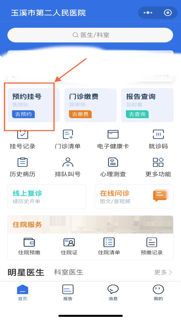2.进入医院小程序首页后,再次点击“预约挂号”