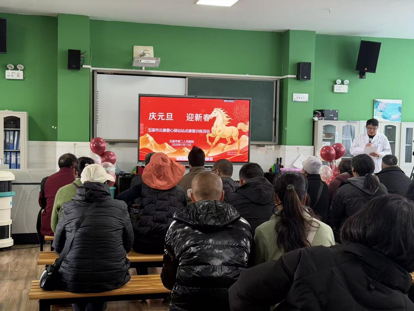 在元旦刚过、新春将至的温馨时节,玉溪市第二人民医院“云康爱心驿站”市级服务站点内暖意融融、笑语阵阵。一场以“庆元旦,迎新春”为主题的精神障碍社区康复活动在此举行,来自峨山县的20余名康复患者及其家属受邀参与,在节日的喜庆氛围中感受康复的力量与社会的关怀。市民政局相关领导及科室负责人向患者及家属致以节日的问候与祝福,并为大家发放了节日纪念品。