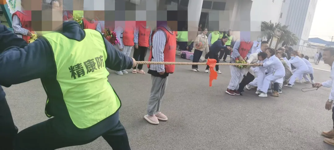 最具人气的当数拔河比赛——在这里,医护与患者不再是照护关系,而是并肩作战的伙伴。一根麻绳,传递力量,拉近距离。大家在协作中强身健体,在欢笑中释放压力,心与心悄然相连。